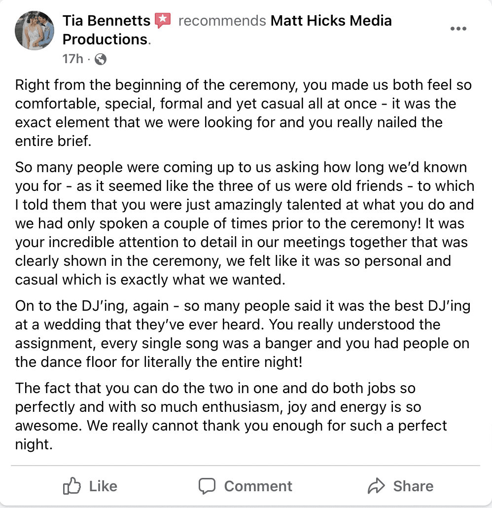 My experience as a public speaker is long having been a longtime MC for numerous Quiz nights (Five Stags bar, Horse and Jockey Inn, Pilot Brewery, The Clubhouse and Waikato University O week, Lucky Finns Hamilton, Boundary Restaurant Tamahere and Stallions Bar and Eatery Te Awamutu), many charity and sports events (Oceania Kenpo 5.0 championship 2017, Brian Wellington Hospice Waikato fundraiser, Leamington Rugby Club 7s, Hautapu rugby events, The Stables Vibes events, St Peters Cambridge parents association fundraiser evening) as well as numerous friends weddings (I never make the cut as a groomsmen). Spending a bit of time behind the mic at Backbeat FM (1 year) and Kiwi FM (3 years) has been a good training ground also. I'm also six Kiwi feature films (The Tavern, Buzz Cut, AU3, Home Kills, Darkest Light and Punch) deep on the old acting resume so your business would be helping a struggling actor make it a step closer to that Chris Warner level we all strive for. Anyway I thought it was time to put all this talking practice to good use, hence becoming a wedding celebrant.