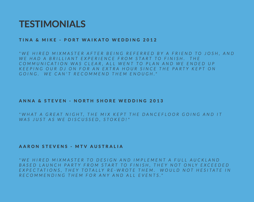 Mixmaster Josh is one of the most sought out DJs in the Waikato/Auckland regions with over 15 years in the game. With a background in Radio Josh has a wide appreciation for all types of music having played diverse live sets on 95bFM, Mai FM, George FM and The Rock. An O.G (original for you people not down with the lingo) of the scene Josh live mixes with vinyl offering a unique and classy sound that is sure to excite and entertain the people at your event. Josh is your man for weddings and corporate functions.