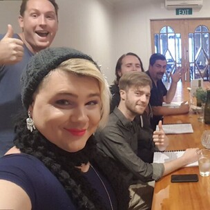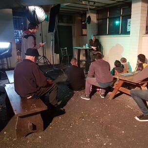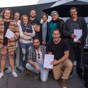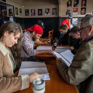 The Tavern cast having one of their monthly table reads in the lead up to shooting.