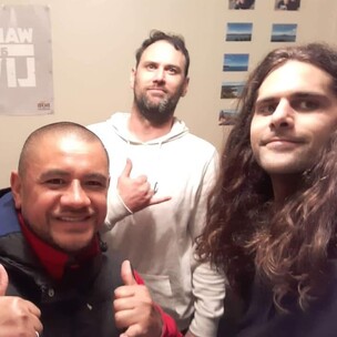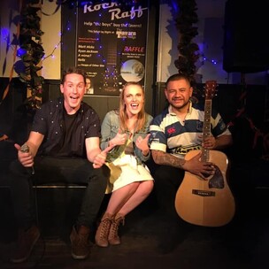 Actos Matt Hicks and Narina Riddle with NZ Idol Ben Lummis.