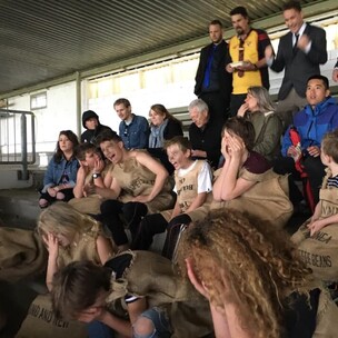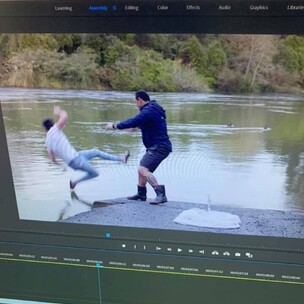 Actor Thomas Lee Easden getting thrown into the Waikato River by his famous All Black brother.